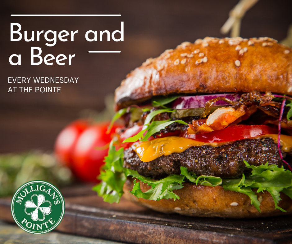 Get over the middle of the week hump with a $12 Burger and Beer Combo! It’s a Great Deal and an even better burger! Stop out to Mulligan’s Pointe!
